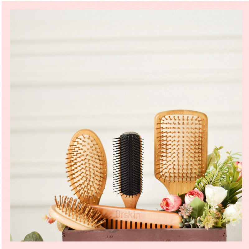 مقبض خشبي من الخيزران للإمساك بالفرش بشكل مريح كما يساعد مشط خشب الخيزران على منع الكهرباء الساكنة ويحافظ على شعرك ناعمًا بعد التمشيط.