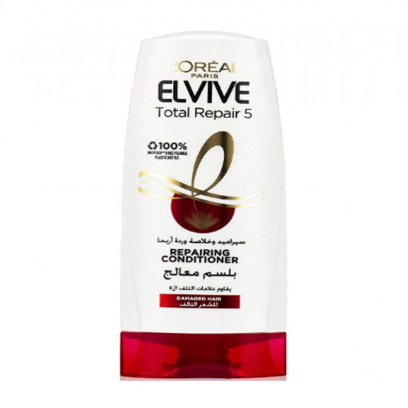 خمس مشاكل والحلّ واحد. يحتوي بلسم Elvive Total Repair 5 الكريم المعالج للشعر من لوريال باريس على البرو-كيراتين والسيراميد ليترك شعرك: 1- أقوى، 2- أكثر كثافة، 3- أكثر حيوية، 4 - حريري الملمس، 5- نابض بلمعان صحي.