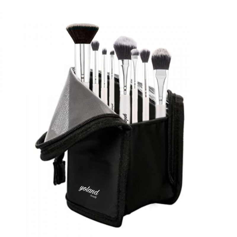 مجموعة فرش مكياج فاخرة تحتوي على 8 قطعة مصنوعة من شعر ناعم. مناسب لجميع أنواع المكياج السائل أو البودرة. كل فرشاة مصنوعة بمقبض أنيق خفيف الوزن يمنحك تحكم مثالي وشعيرات ناعمة توفر تطبيق سلس. تحتوي على حقيبة فريدة يمكنك إستخدامها كحامل للفرش. يتميز بسحاب سهل الإستخدام سلس و متين لقفل جميع أساسياتك في مكان واحد.
