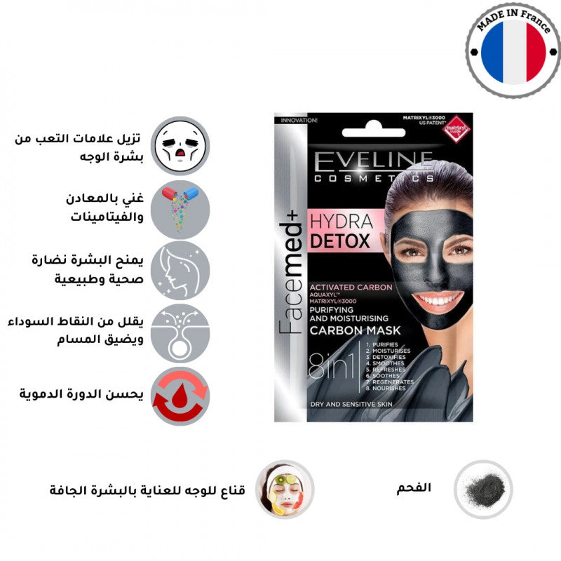 ايفلين فيس ميد - قناع تنقية البشرة الجافة والحساسة وإزالة السموم بالكربون 8فى1 2فى5 مل