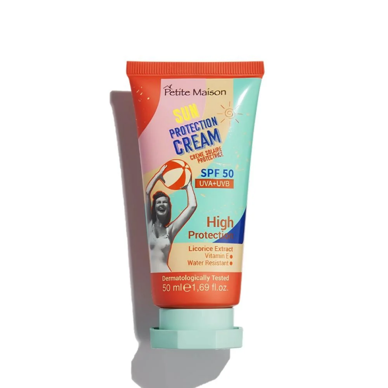 بيتيت ميزون -  كريم واقي من الشمس بعامل حماية 50 درجة 50 مل يحمي بشرتك من الآثار الضارة للشمس ويساعد البشرة على التنفس بفضل تركيبته الخفيفة.