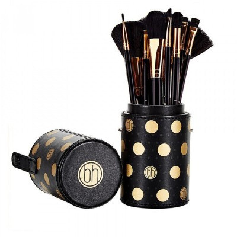 - مميزات بي اتش كوزماتيكس طقم فُرَش مستحضرات تجميل مكون من 11 قطعة أسود/ذهبي: