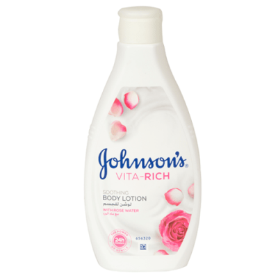 يمنح لوشن الجسم Vita-Rich تلطيف من جونسون دينه لذيذاً يرطب الجسم Vita-Rich بقوامه الغني.يعمل لوشن الجسم Vita-Rich تلطيف جونسون من الغني بماء الورد والجلسرين المرطب على ترطيب ولطيف ويمنحها بارداً لمدة 24 ساعة. من جونسون للحصول على بشرة برائحة عطرة ومظهر صحي ومرتاحة اليوم!المواصفات:• تركيبته الذكية الخاصة براحة تدوم 24 ساعة• تخصيص خاصة للترطيب الكثيفة• غنية بماء الورد والجلسرين