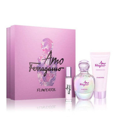 مجموعة أمو فيراغامو فلاورفل تتضمن عطر أمو فيراغامو فلاورفل أو دو تواليت بحجم 100 مل، وعطر أمو فيراغامو فلاورفل أو دو تواليت بحجم 10 مل، بالإضافة إلى لوشن للجسم بحجم 100 مل. هذه المجموعة الجديدة للنساء الناشئة ولاكن في تجربة كاملة للعطر وللعناية بالجسم.