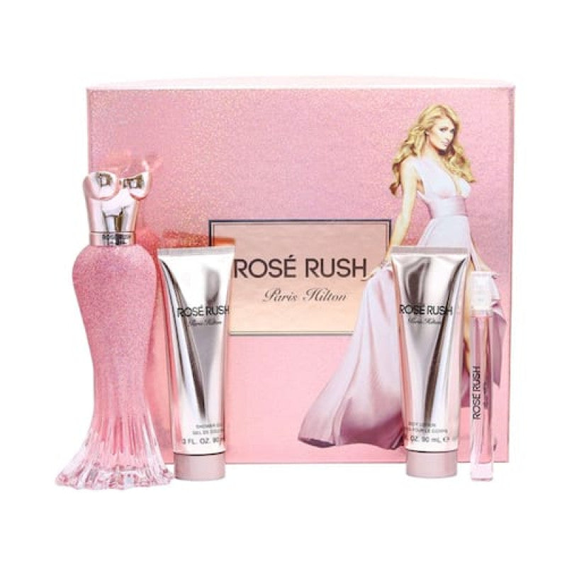 مجموعة عطرية فاخرة من باريس هيلتون للنساء تحتوي على عطر روز راش 100 مل + ماء عطر 10 مل + لوشن للجسم 90 مل + جل استحمام 90 مل.