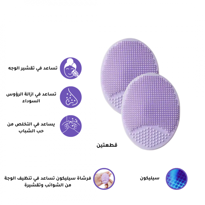 فرشاة سيليكون لتنظيف وتقشير الوجة والرؤوس السوداء - 2 قطع - بنفسجي