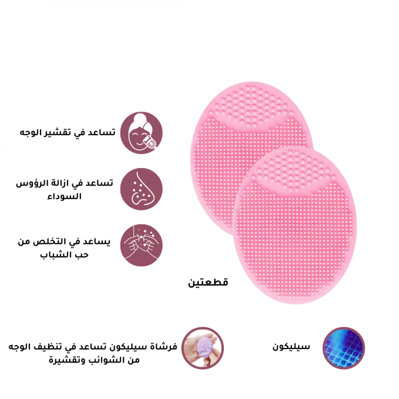 فرشاة سيليكون لتنظيف وتقشير الوجة والرؤوس السوداء - 2 قطع - وردي