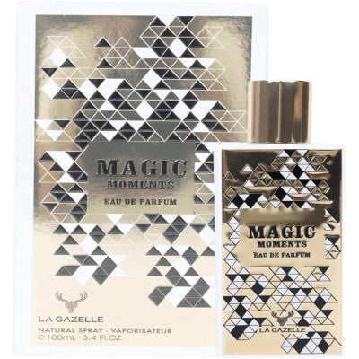 عطر لا جازيل ماجيك مومنتس أو دو بارفيوم للنساء – 100 مل يحتضنك عطر Magic Moments من La Gazelle بعبير ساحر يجمع بين الأزهار المتفتحة والفواكه الغنية بالعصارة. يمنحك رائحة أنثوية آسرة تدوم طويلاً وتُبرز الأناقة والثقة والرومانسية. صُمم هذا العطر للنساء اللواتي يقدرن لحظات الحياة الثمينة التي لا تُنسى، بمزيج متناغم من الفواكه الحلوة واللمسات المسكية الناعمة.