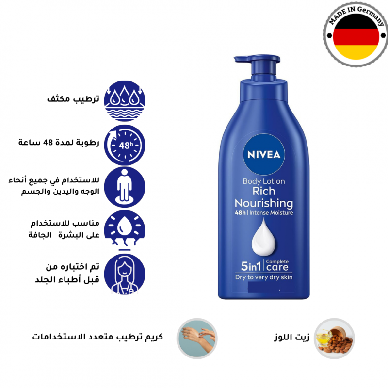 لوشن الجسم المغذي من نيڤيا، زيت اللوز، للبشرة الجافة جداً، 400 مل