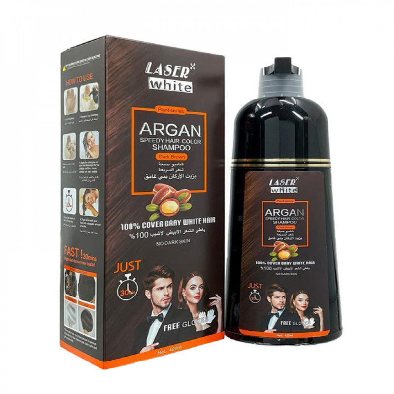 شامبو صبغة شعر السريعة بزيت الارجان بني غامق من ليزر وايت 420مل :