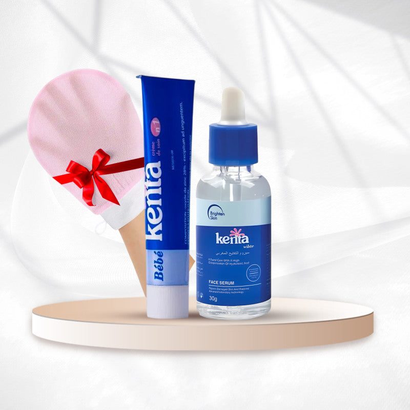 تجمع هذه المجموعة بين سيروم كينتا المركز وكريم كينتا لتوحيد اللون، تفتيح آمن، وترطيب ناعم يدوم.