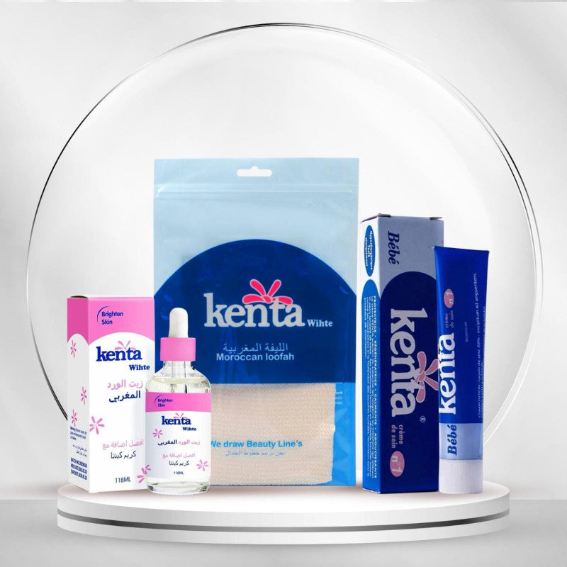 مجموعة كينتا وايت بزيت الورد تقدم روتين عناية بسيط وفعّال يساعد على تفتيح البشرة وترطيبها بعمق.