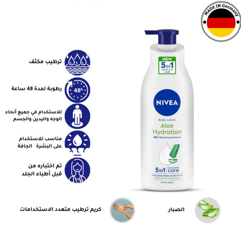 نيفيا - لوشن الجسم، ألو آند هايدريشن، بالألوفيرا، للبشرة العادية إلى الجافة، 400 مل