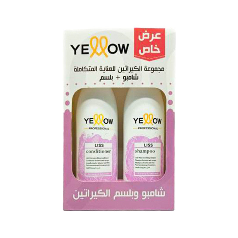 مجموعة الكيراتين للعناية المتكاملة من يلو (Yellow) هي نظام علاجي مصمم لإصلاح الشعر التالف، المجعد، والذي خضع لعلاجات كيميائية. تتكون المجموعة من شامبو وبلسم،